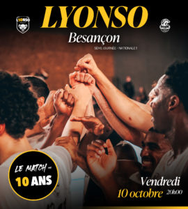Pour un match spécial 10 ans de la CTC, pourquoi ne pas regarder les 10 dernières rencontres entre le BesAC et LYONSO ? Depuis 2015, notre équipe a remporté 9 des 10 dernières confrontations contre les Bisontins (la seule défaite en date remonte à avril 2016, victoire de BesAC 73-71). Ce match sera donc l’occasion de battre pour la 10ᵉ fois nos voisins de Besançon.